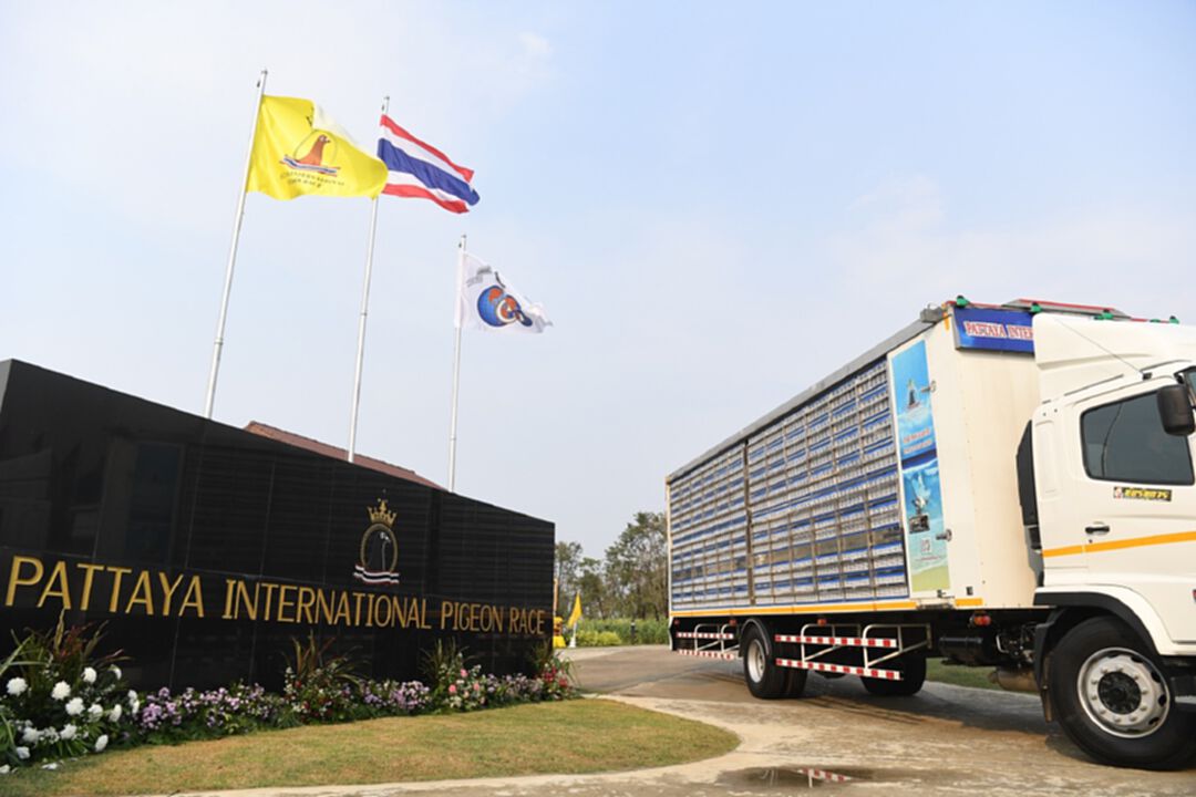 นกพิราบแข่งนานาชาติ จาก 38 ประเทศทั่วโลก ถูกลำเลียงจากพัทยามุ่งสู่จังหวัดอุบลราชธานี เพื่อเข้าสู่โปรแกรมการปล่อยตัว ระยะทาง 530 กิโลเมตร หานกพิราบ ที่ได้แชมป์